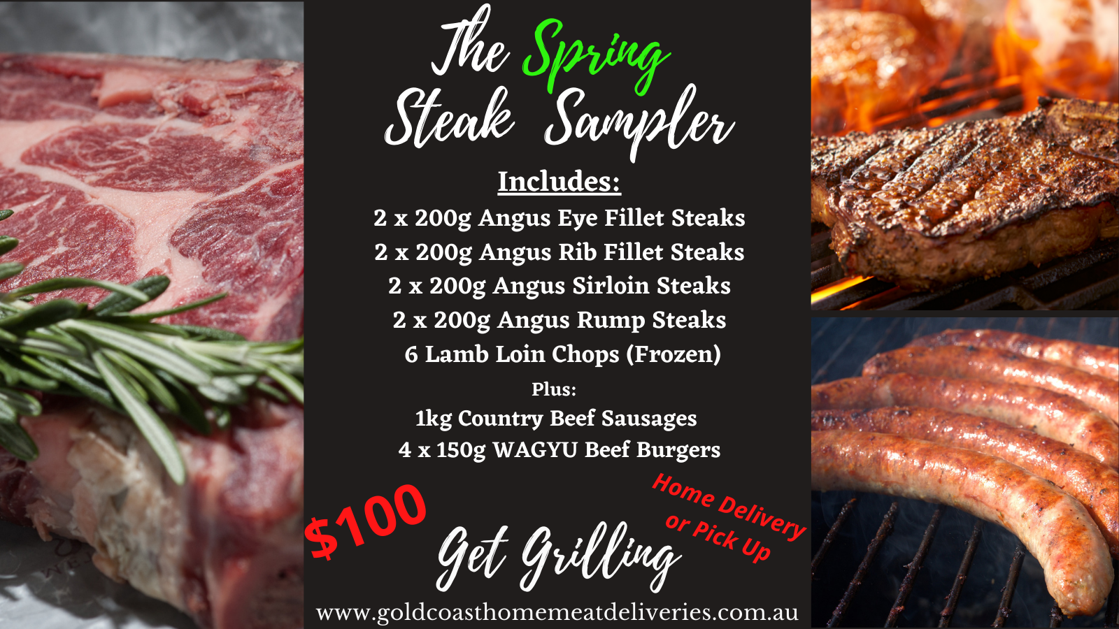 The days are warming up – and so is the bbq! Get ready for sunshine, sizzle, and serious flavour with our legendary SPRING STEAK SAMPLER PACK!